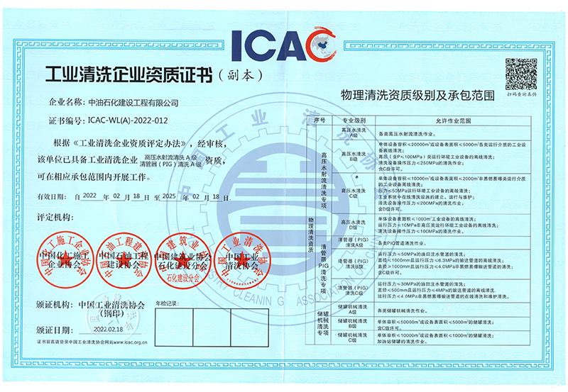 工业清洗企业资质证书